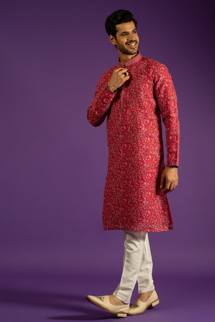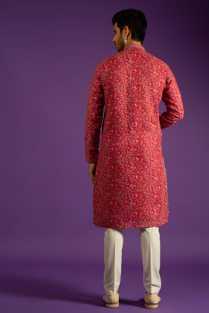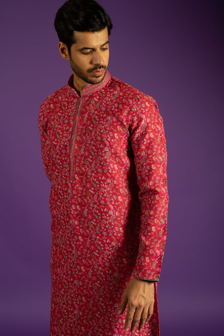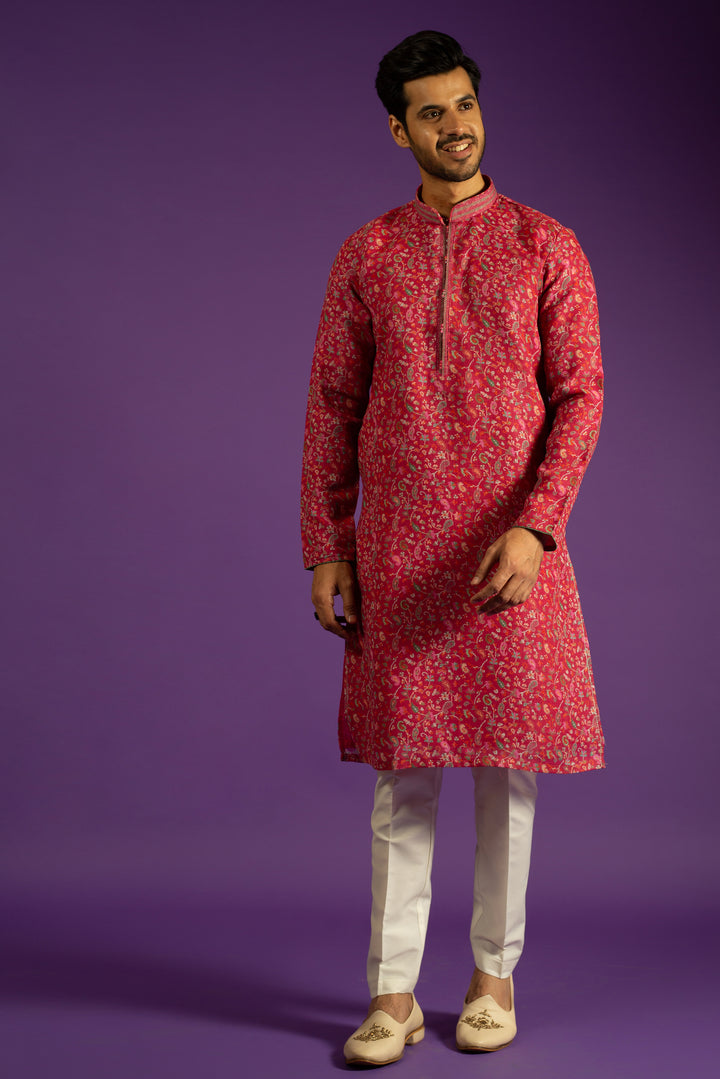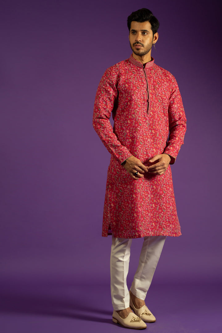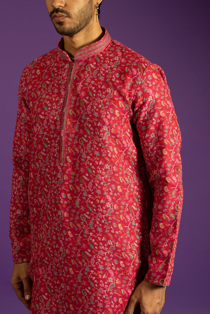 PINK PRINTED LINEN KURTA SET